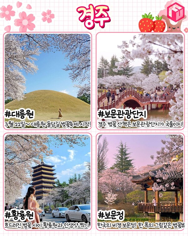 - 팁: 경주는 야경도 아름다운 곳이 많으니, 낮에는 꽃구경, 밤에는 야경 감상으로 알찬 하루를 보내세요.
